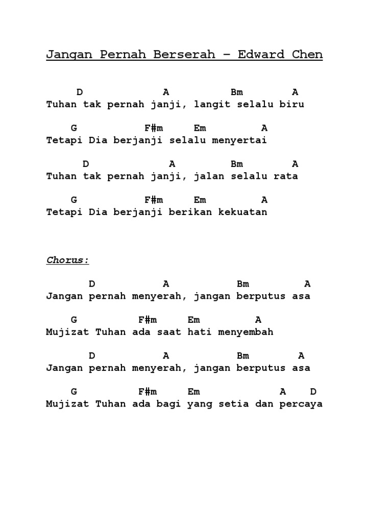 Lirik dan Chord Lagu Rohani Jangan Pernah Menyerah - Edward Chen …