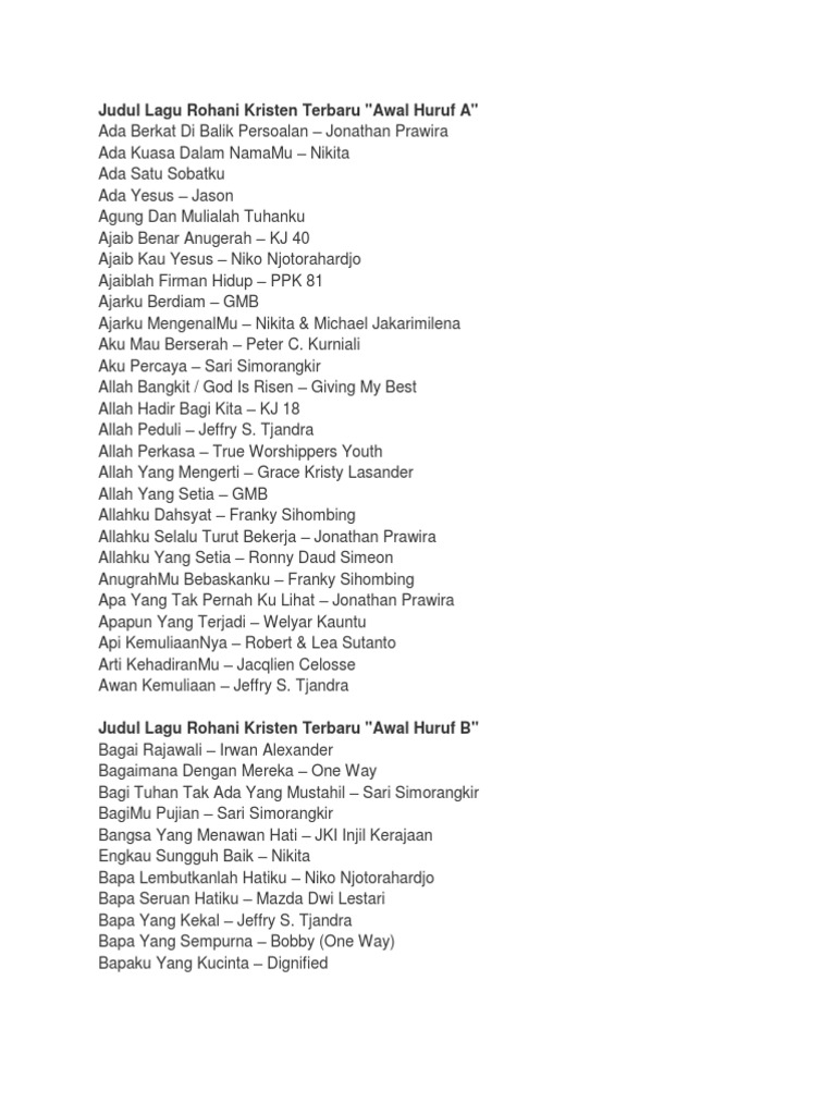Judul Lagu Rohani Kristen Terbaru - [DOCX Document]