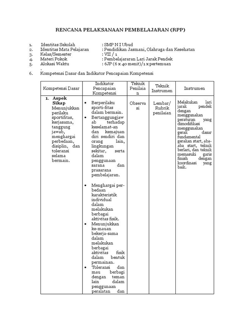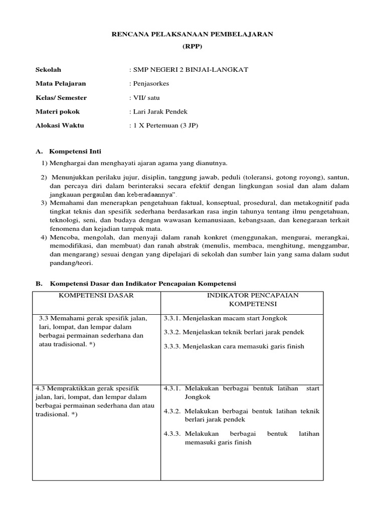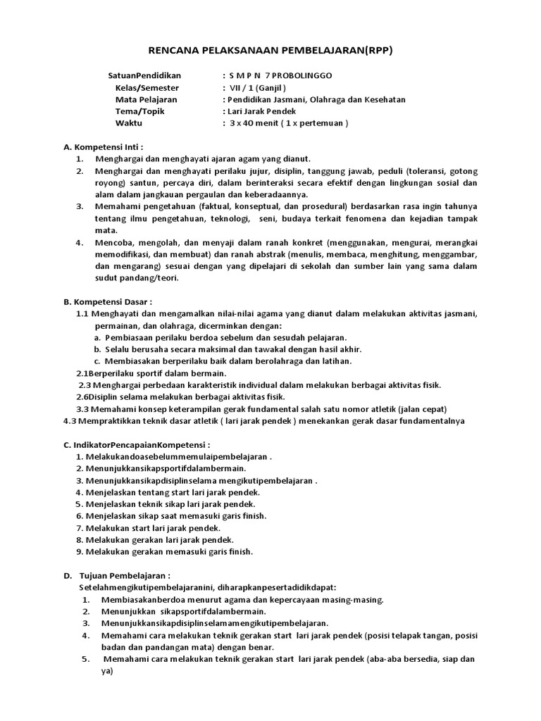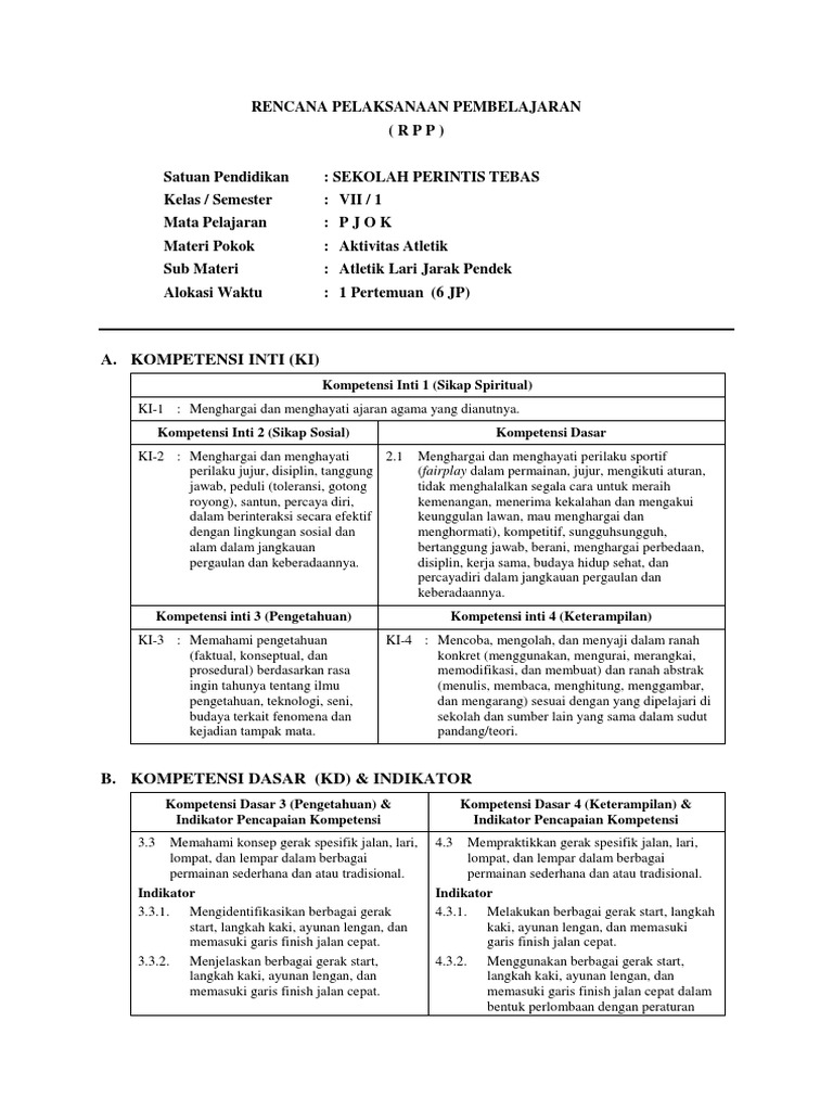 RPP PJOK SMP Kelas 7 Kurikulum 2013 Edisi Revisi 2017 …
