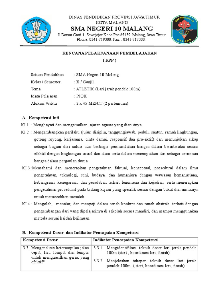 Rpp Lari Jarak Pendek 100 m SMA kelas X