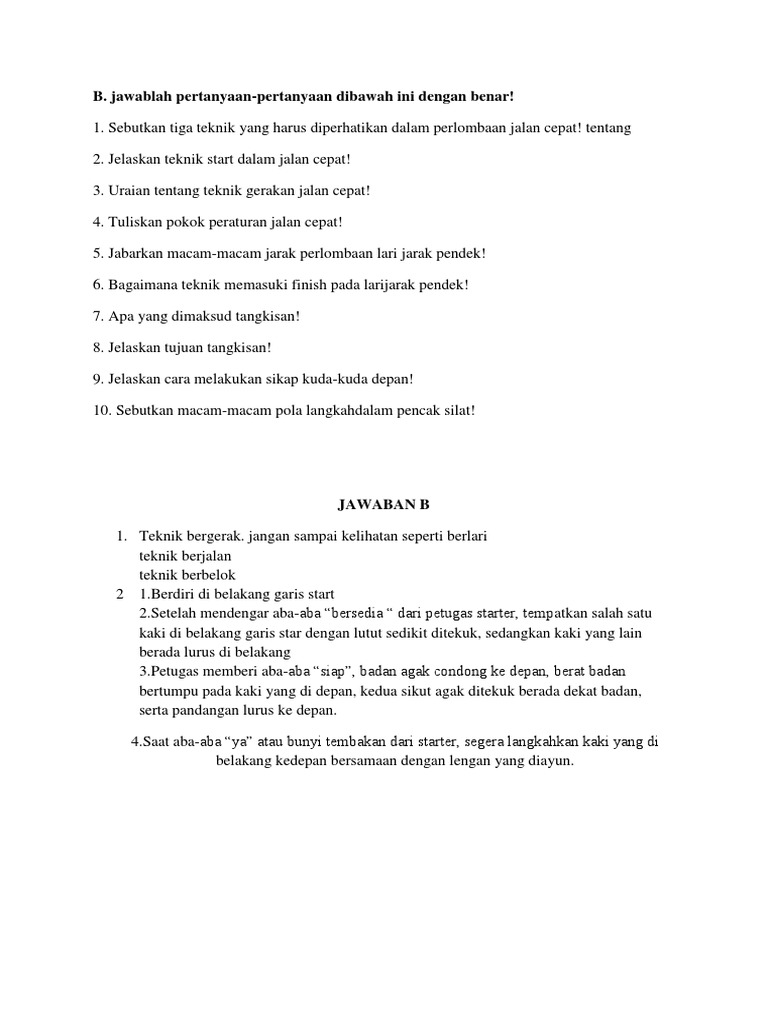 Soal Penjaskes Lari Jarak Pendek - Guru Paud