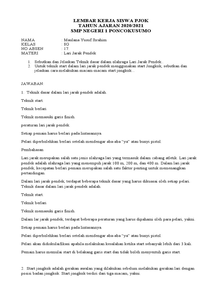 Lembar Kerja Siswa Pjok TAHUN AJARAN 2020/2021 Smp Negeri …