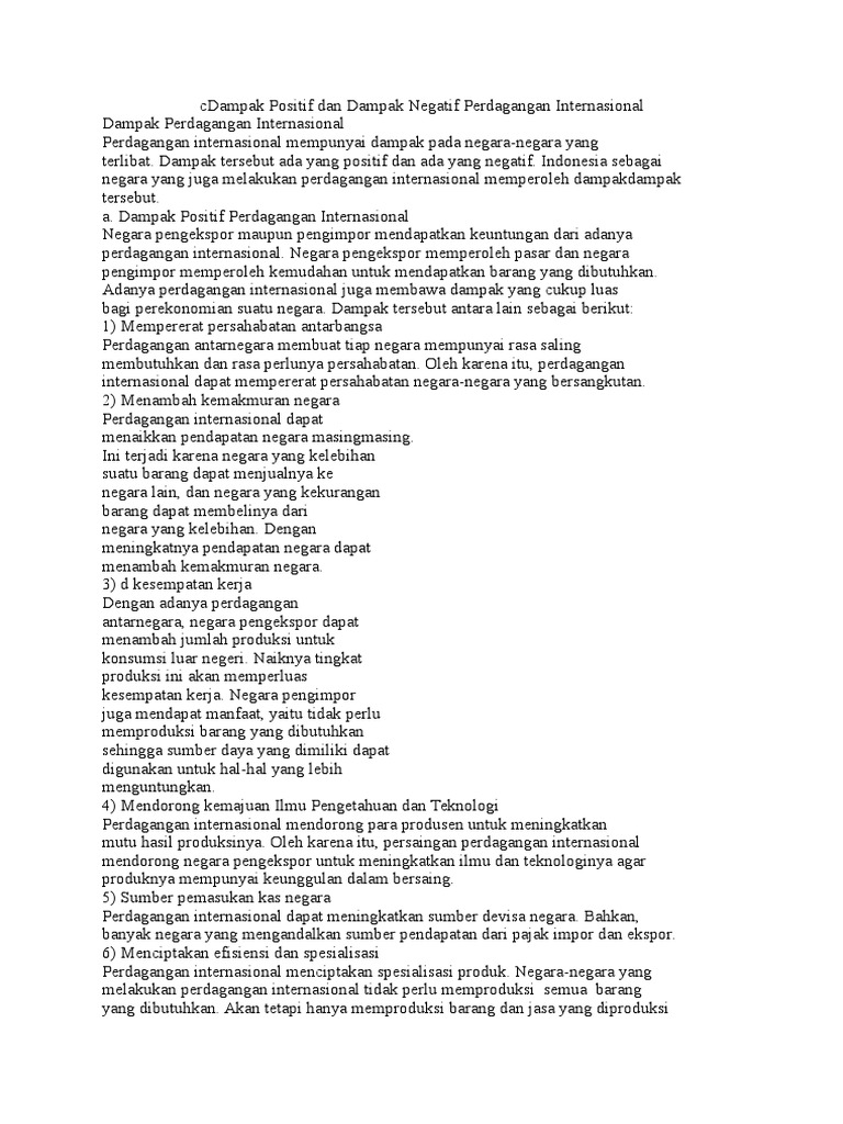 DOC) Dampak Positif dan Dampak Negatif Perdagangan Internasional …