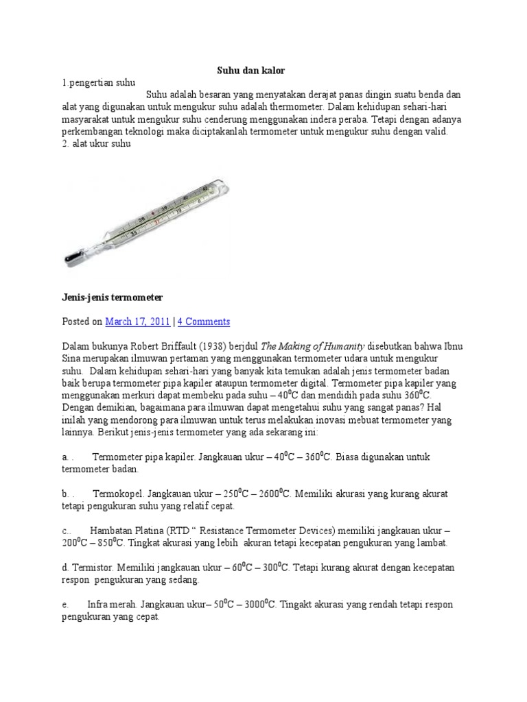 Suhu Dan Pengukurannya, Pengertian Suhu, Jenis Termometer