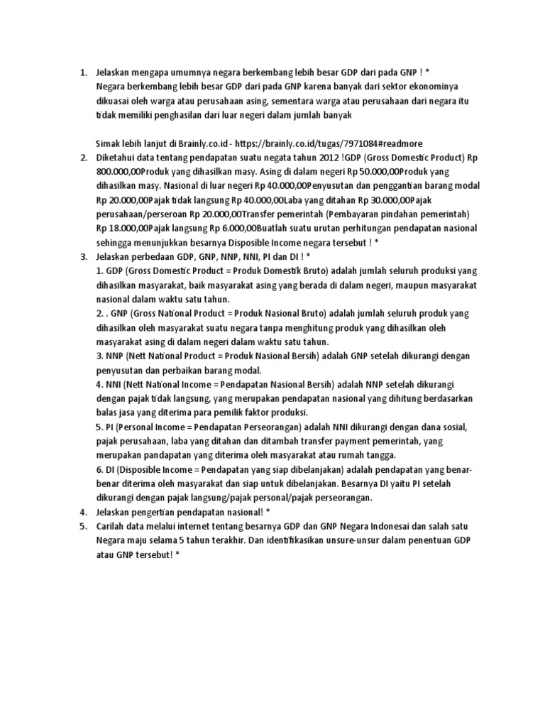 3. Untuk Negara berkembang, lebih besar mana antara PDB dengan PNB? Jelaskan! - Brainly.co.id