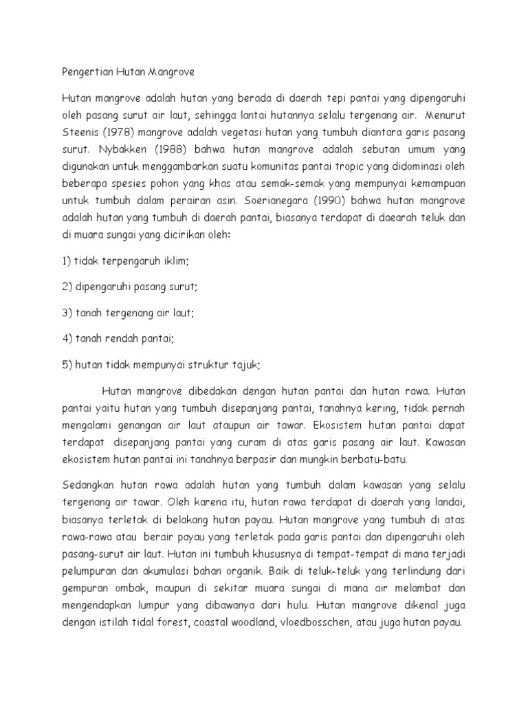 Jelaskan pengertian dan fungsi hutan bakau.kalo bisa semua nya - Brainly.co.id
