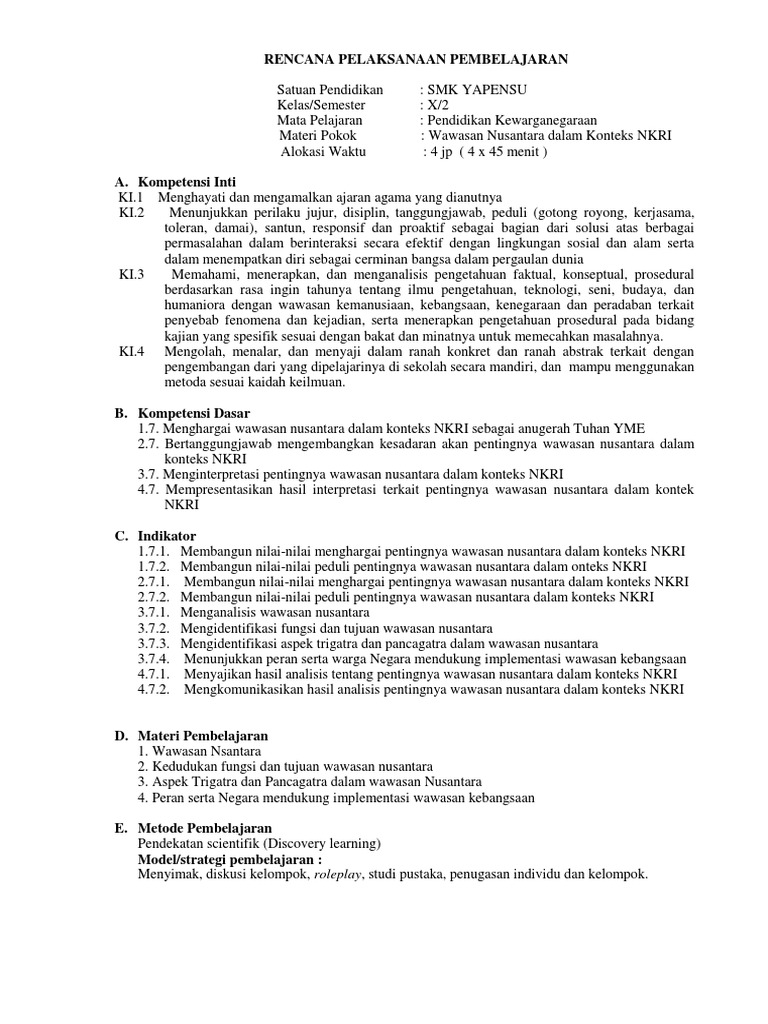 PDF) RPP 3 PKN KELAS X SEMESTER 2.pdf | Eli Priyatna - Academia.edu