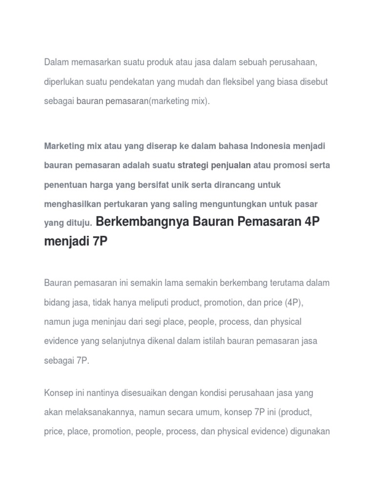 BAURAN PEMASARAN : Pengertian, Sejarah dan Marketing Mix 4P & 7P | Salamadian