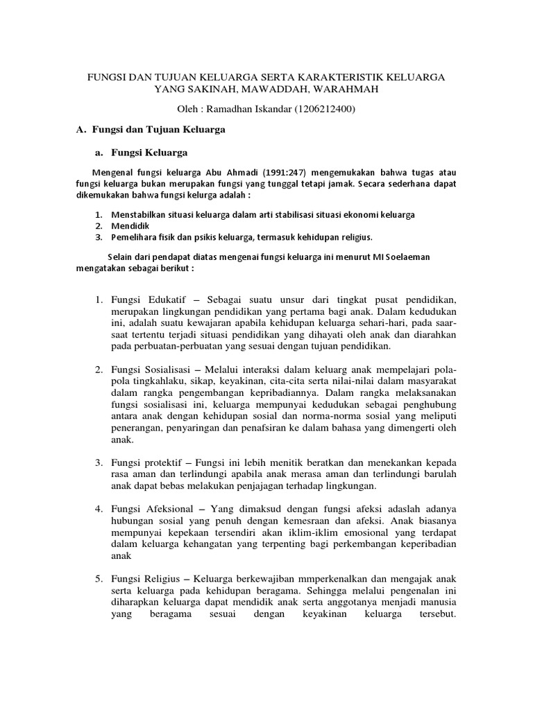 Fungsi Dan Tujuan Keluarga Serta Karakteristik Keluarga Yang Sakinah