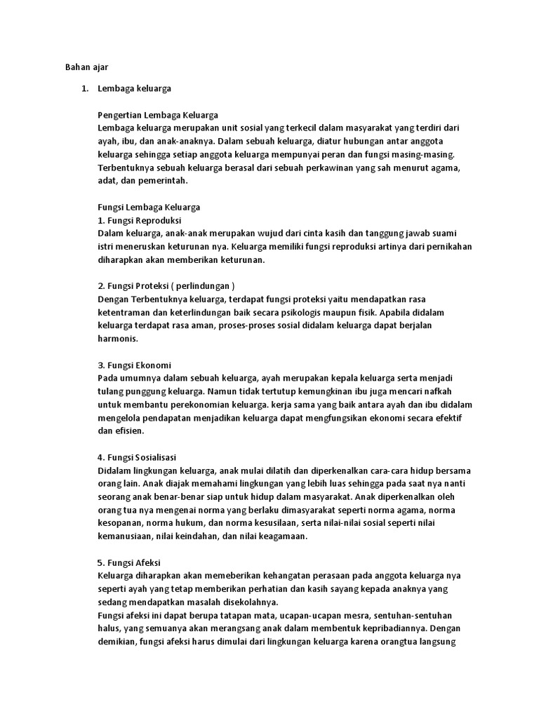 jelaskan fungsi lembaga keluarga dalam fungsi afeksi, sosialisasi …
