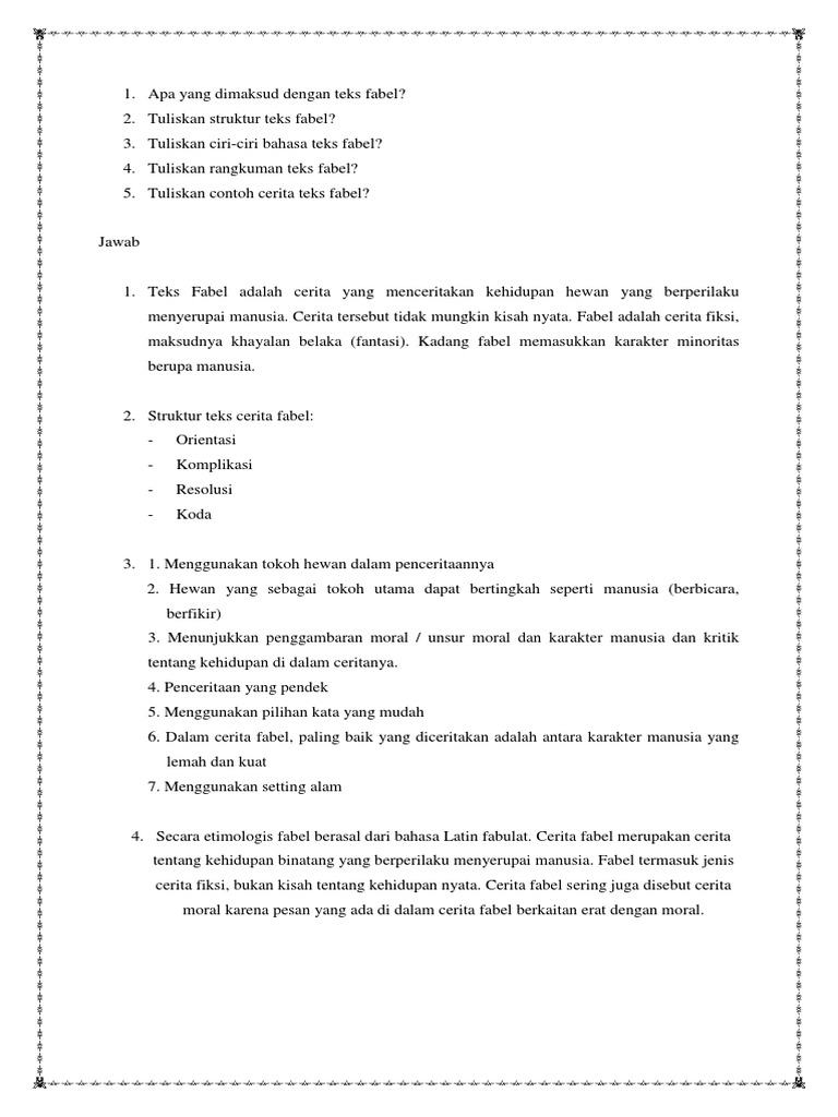 Pengertian, Struktur Teks Cerita Fabel, Kaidah Kebahasaan Serta …