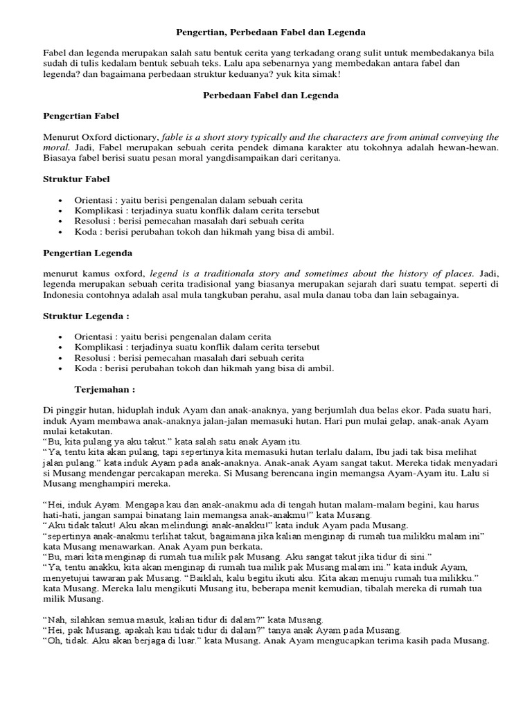 Pengertian Fabel Dan Legenda
