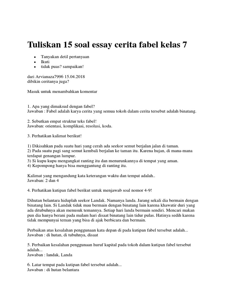 Tuliskan 15 soal Fabel kls VII.docx