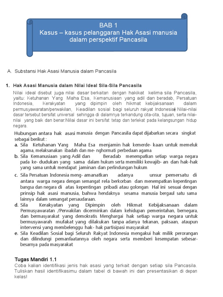 Bab 1 Kasus – kasus pelanggaran Hak Asasi manusia dalam perspektif Pancasila