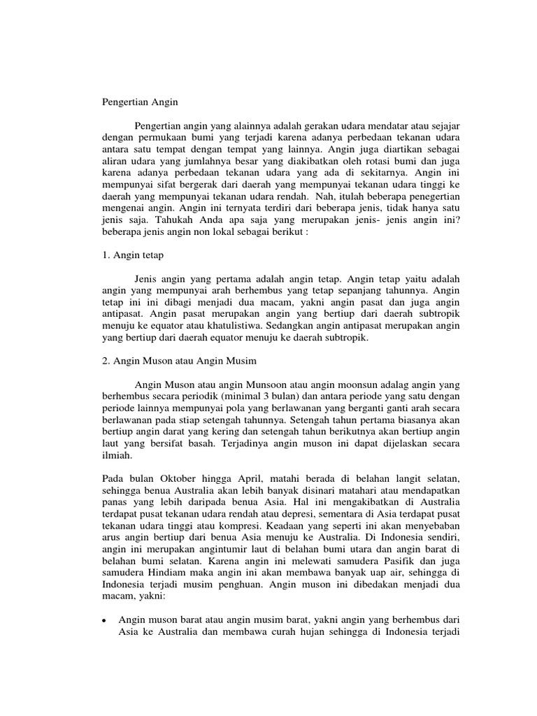 Jenis Jenis Angin Di Indonesia