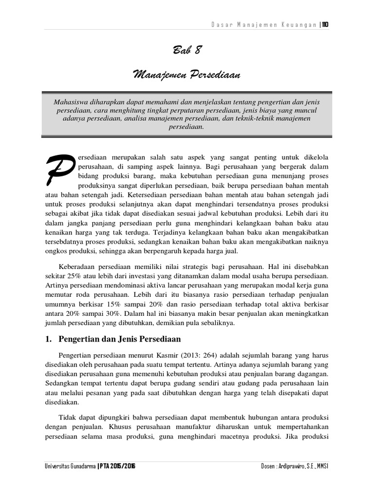 Persediaan/ Inventori - REFERENSI MANAJEMEN OPERASI