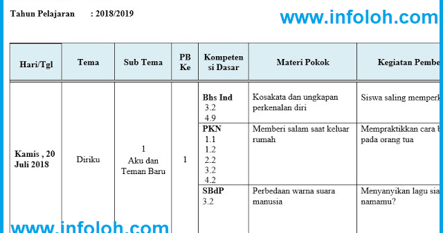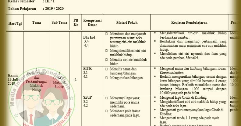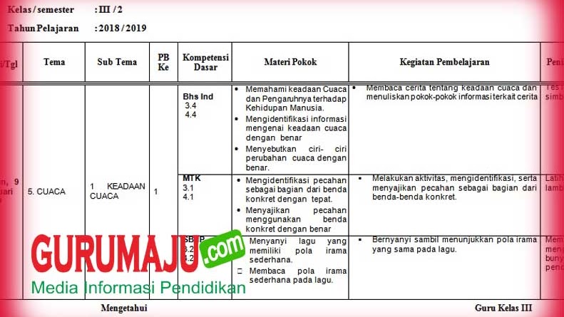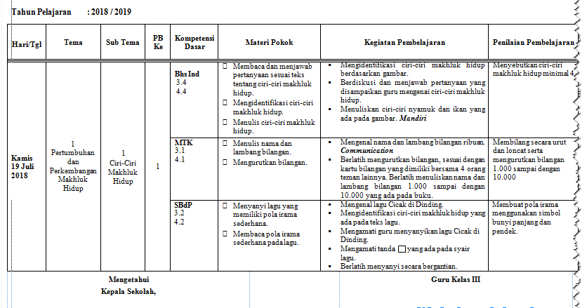 Jurnal Harian Guru K13 Revisi 2018 Kelas 3 Semester 1 2019 | Info GTK