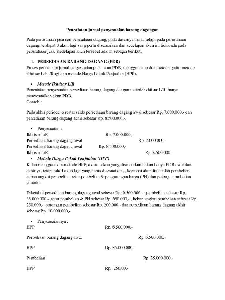 Jurnal Penyesuaian Persediaan Barang Dagang dengan Pendekatan …
