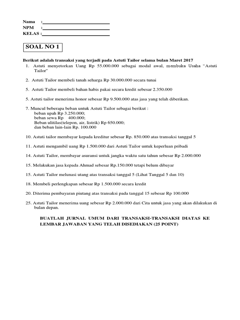 Contoh Soal Jurnal Umum Dan Jawabanya | Kumpulan Soal pelajaran 6