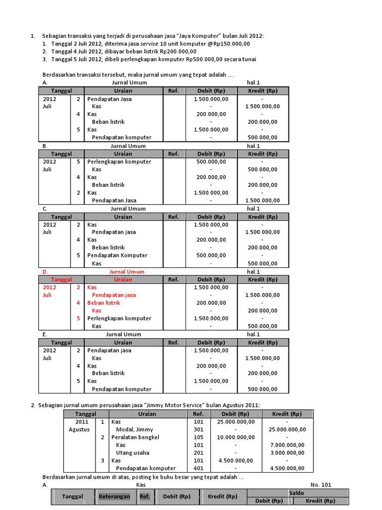 Contoh Soal Jurnal Umum Akuntansi Perusahaan Jasa | Kumpulan Soal …