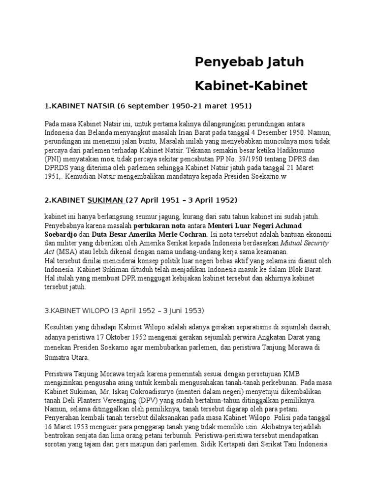 Penyebab jatuhnya kabinet sukiman pada masa demokrasi liberal …