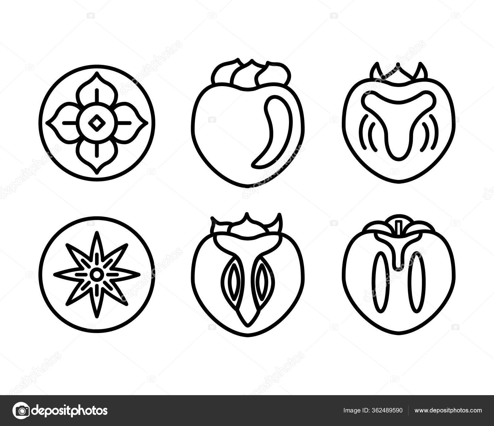 Persimmon Fruit Icon Set, Outline Style Stock Vector - Illustration of kaki, delicious: 135623867