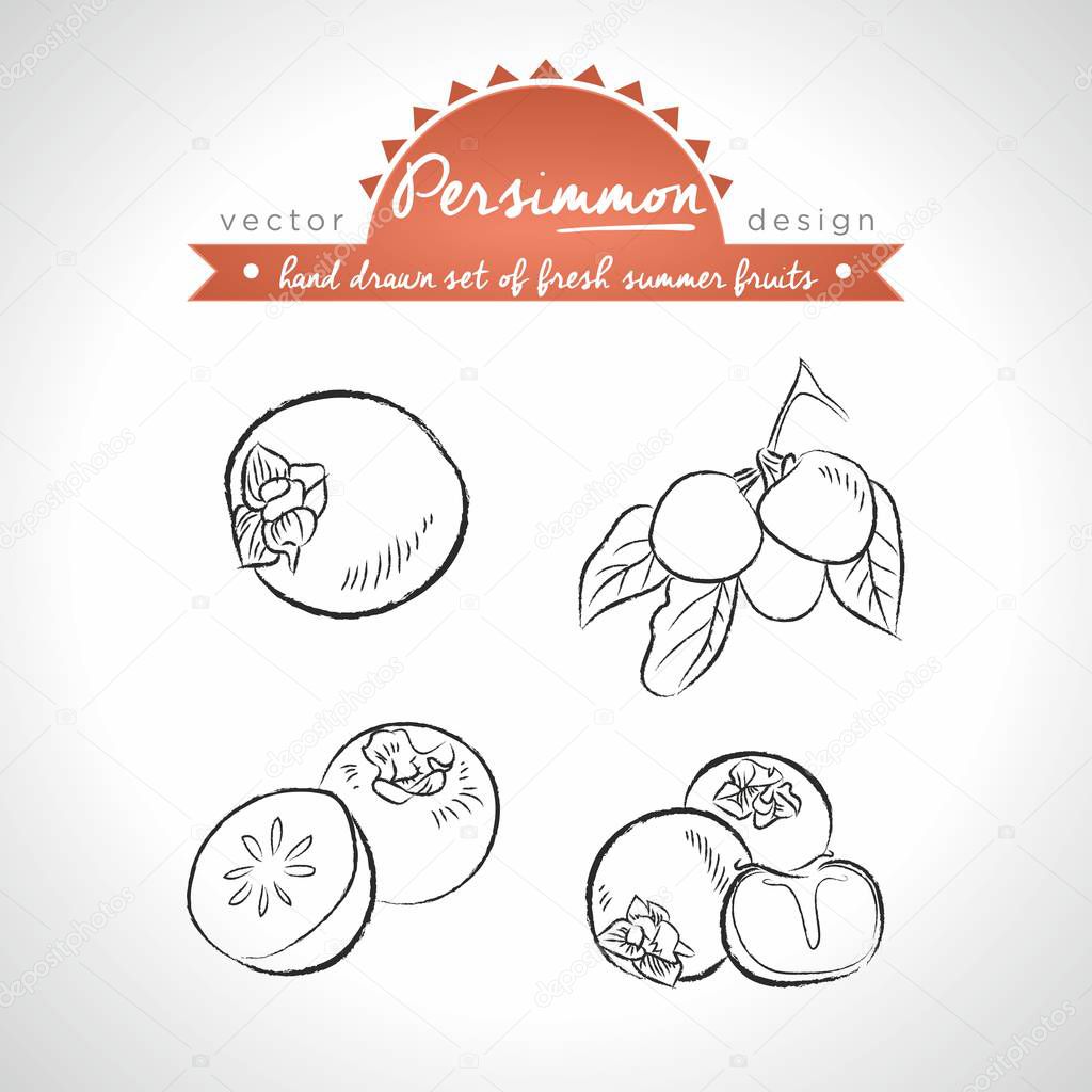 Hand Drawn of Kaki or Japanese Persimmon on White Background — Stock Vector © Iamnee #183319062