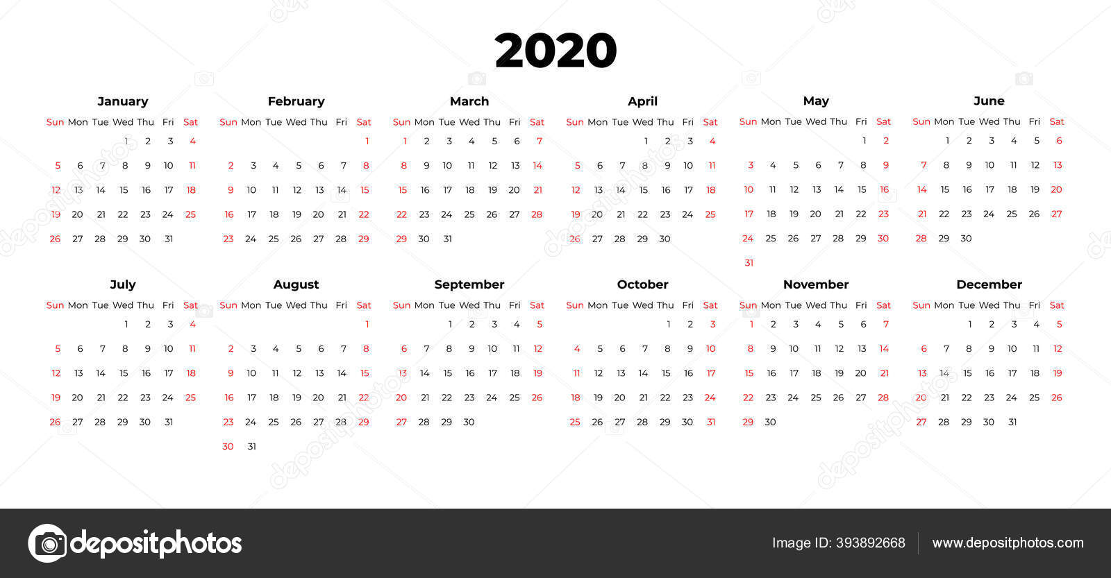 2020 calendar vector template. Abstract empty isolated set 2020 …