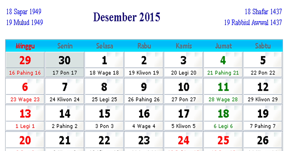 Kalender Desember 2015 Masehi Arab Jawa Komplit Gratis | Mayaphobia