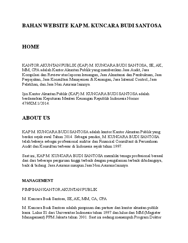 DOC) Bahan Website KAP Kuncara | Kuncara Budi Santosa - Academia.edu