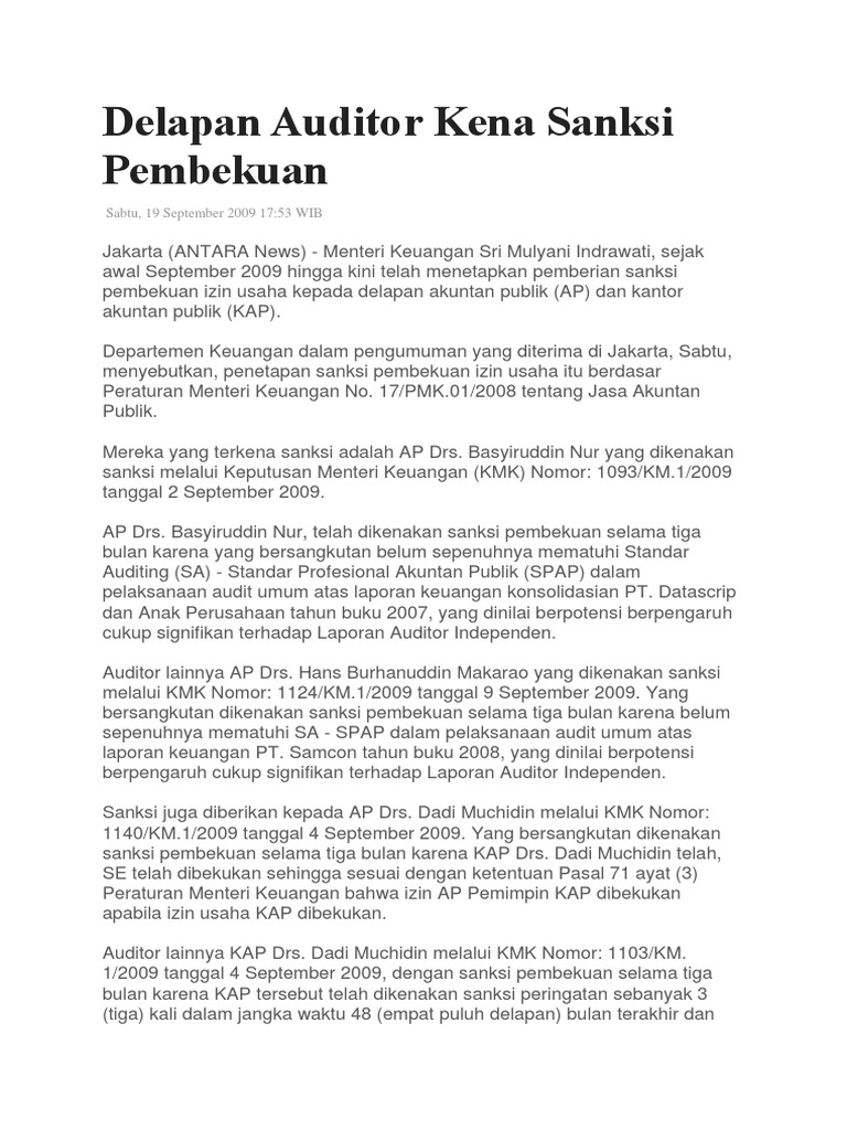 Delapan Auditor Kena Sanksi Pembekuan