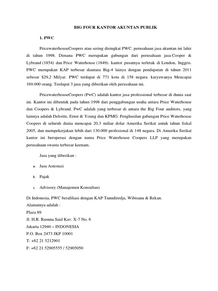 Big Four Kantor Akuntan Publik 1. PWC