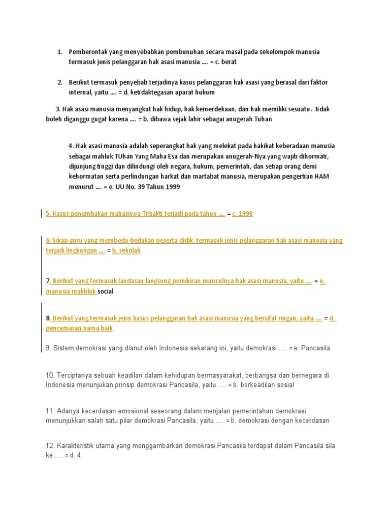 LENGKAP Daftar Jawaban Soal Terkait Penerapan Pengamalan Sila …