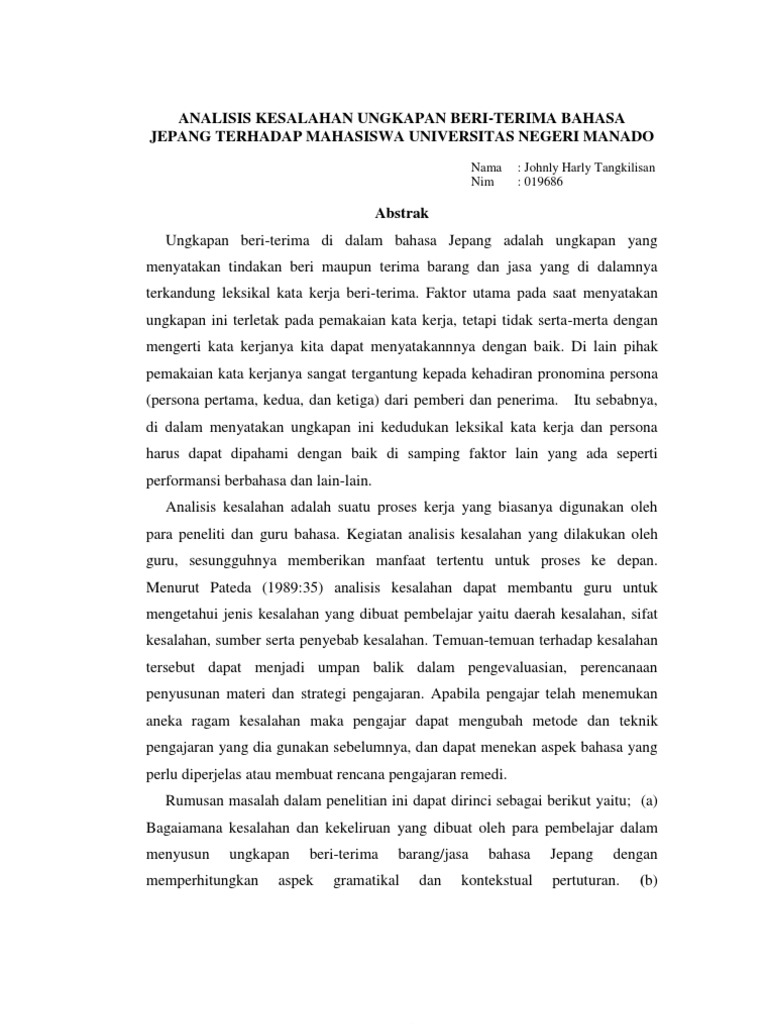 JENIS KESALAHAN YANG BIASA TERJADI DALAM KARANGAN BERBAHASA BAHASA JEPANG COMMON ERRORS OCCURED IN JAPANESE ESSAYS