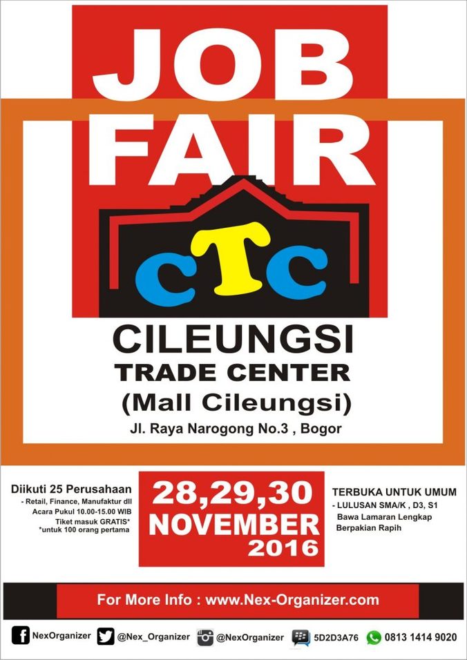 Info Karir) Job Fair Bogor, Mall Cileungsi Trade Center – November 2016 – di Bodetabek, 24 Nov 2016 – Loker | AtmaGo