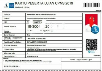Kartu peserta ujian CPNS tahun 2019 Kab…. - Badan Kepegawaian …