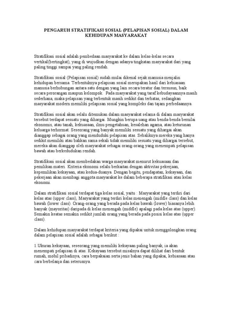 Diferensiasi Sosial dan Stratifikasi Sosial dalam Msayarakat – Teras …