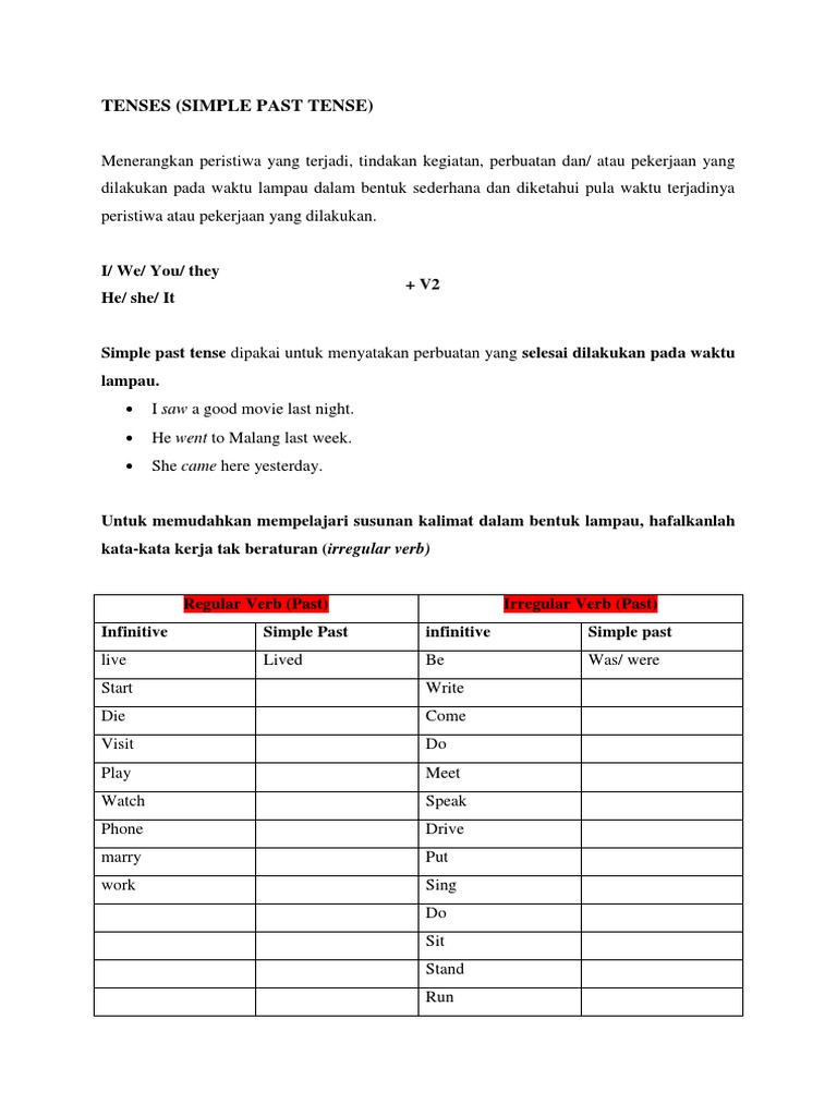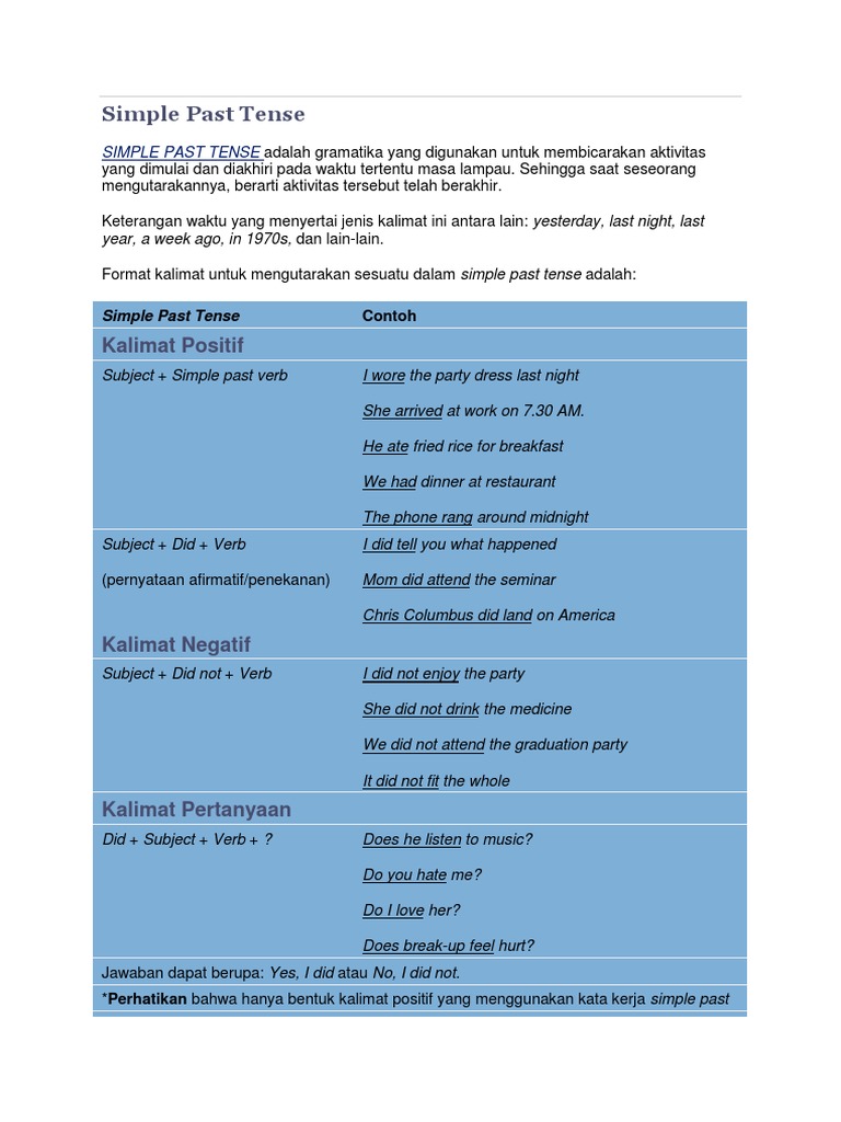 Pengertian, Kegunaan, Rumus dan Contoh Simple Past Tense - Belajar …