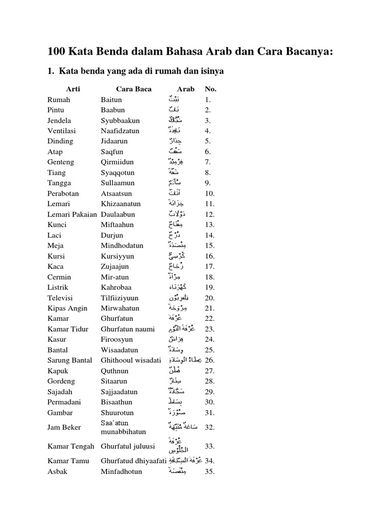100 Kata Benda dalam Bahasa Arab Lengkap dengan Cara Baca dan …