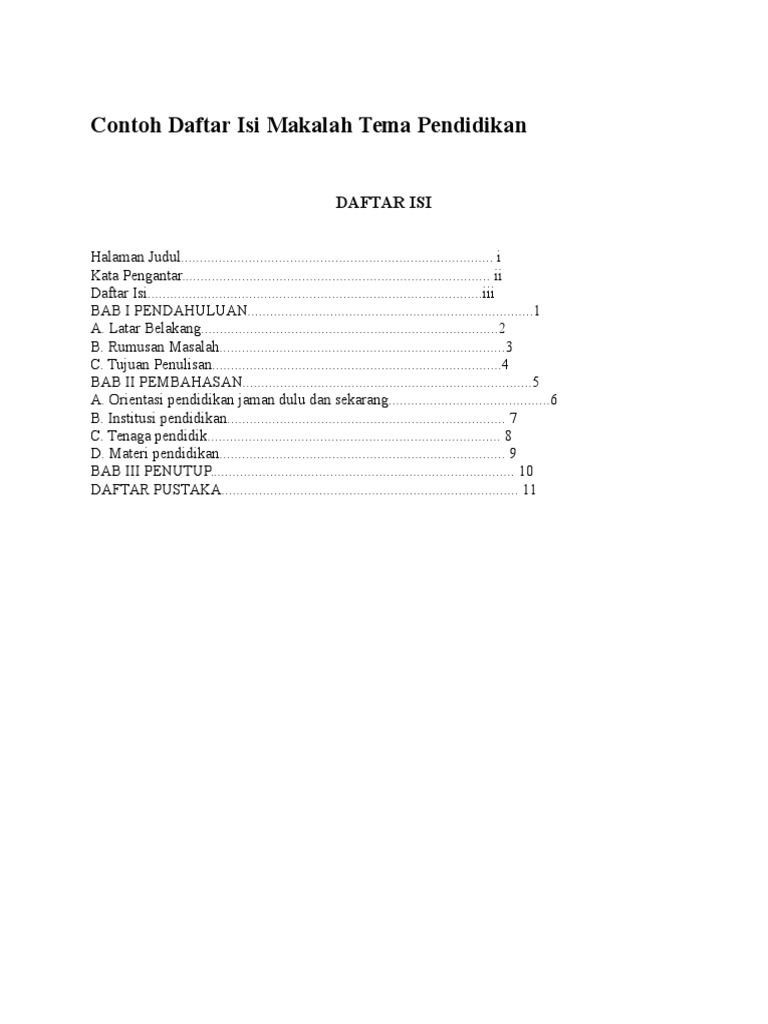 Contoh Daftar Isi Makalah