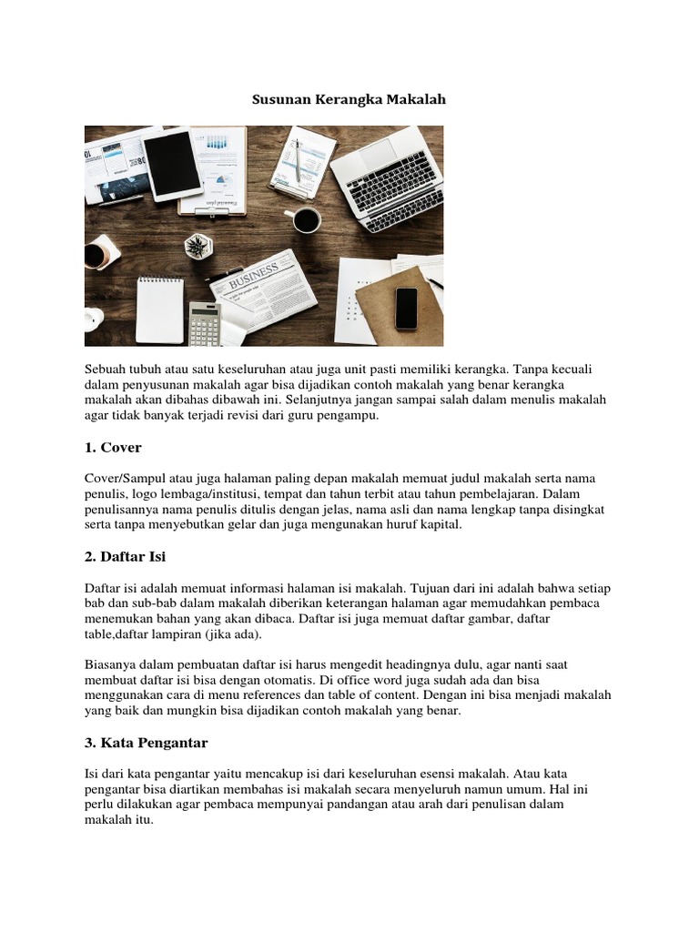 Susunan Kerangka Makalah: 1. Cover