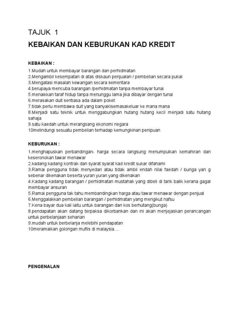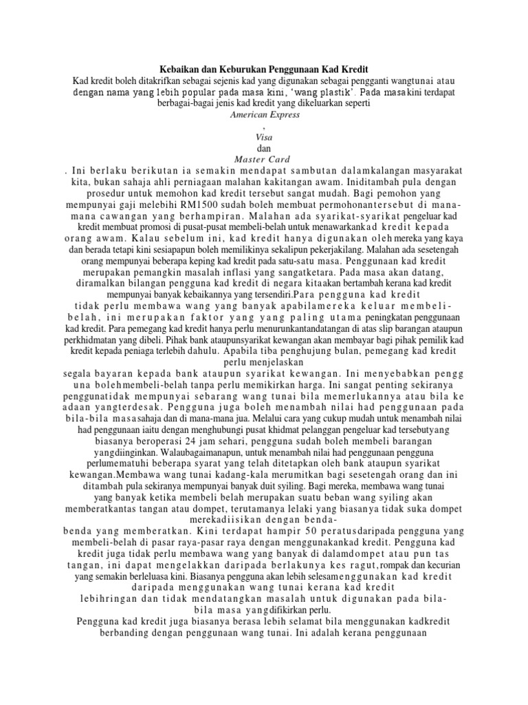 DOC) Kebaikan dan Keburukan Penggunaan Kad Kredit | Shafiqah Muhidin - Academia.edu