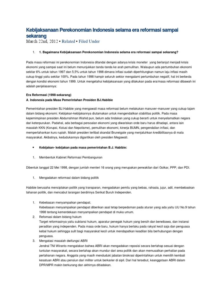 DOC) Kebijaksanaan Perekonomian Indonesia selama era reformasi sampai sekarang | Ishlahuddin Somba - Academia.edu
