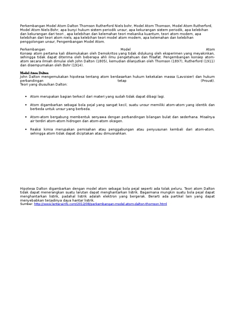 Kelebihan dan Kelemahan Teori Atom Dalton Thomson Rutherford Bohr …