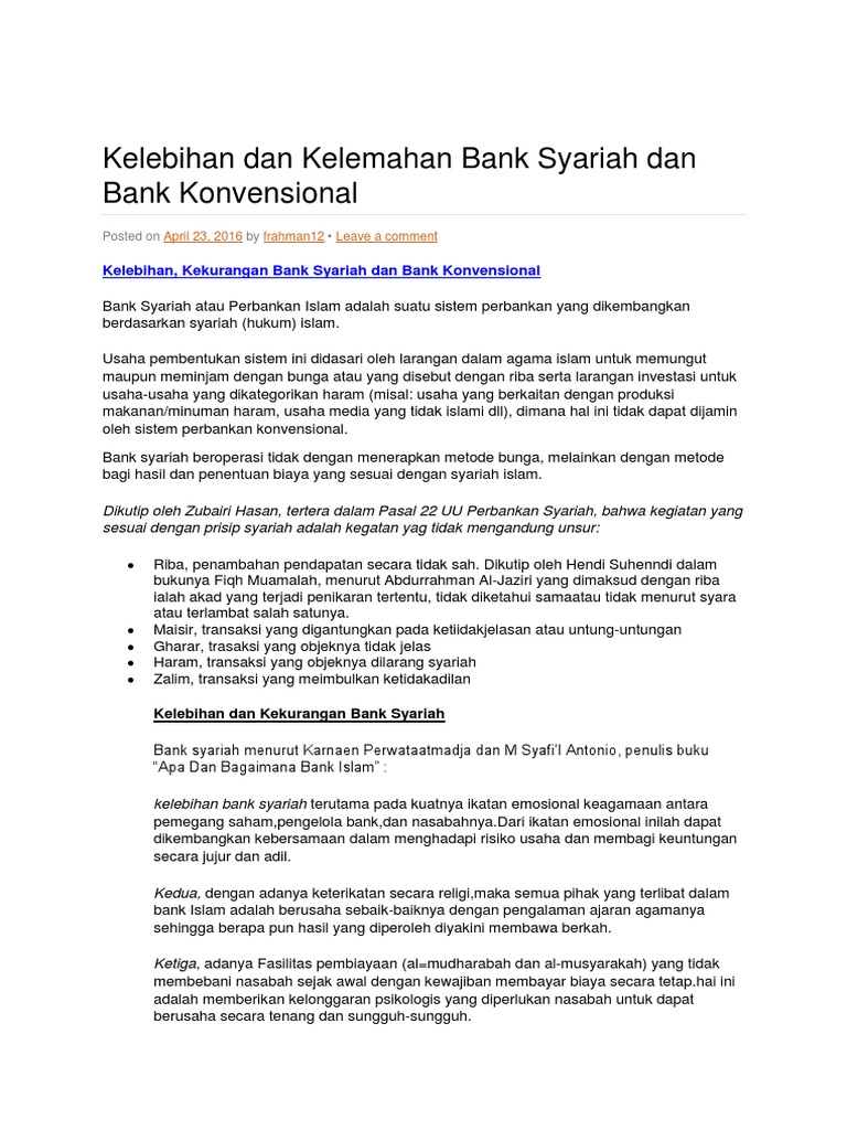 Apa saja kelebihan bank syariah yang dapat mengatasi kelemahan …