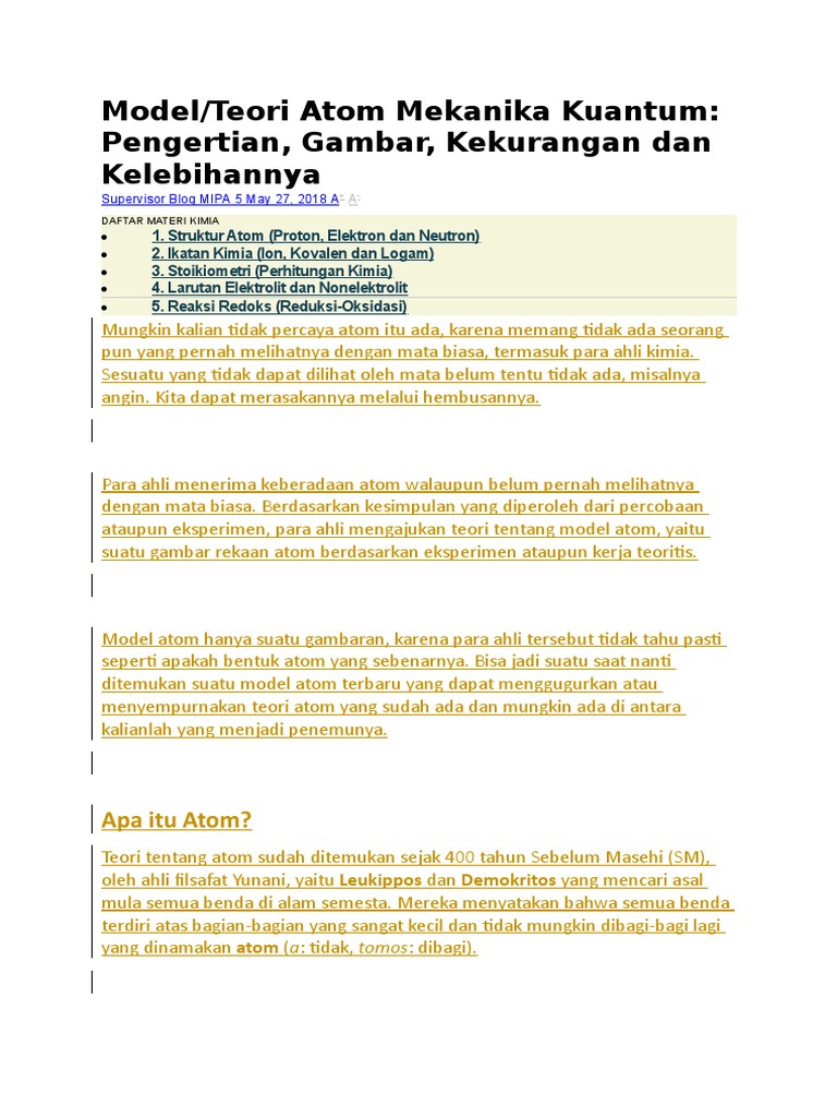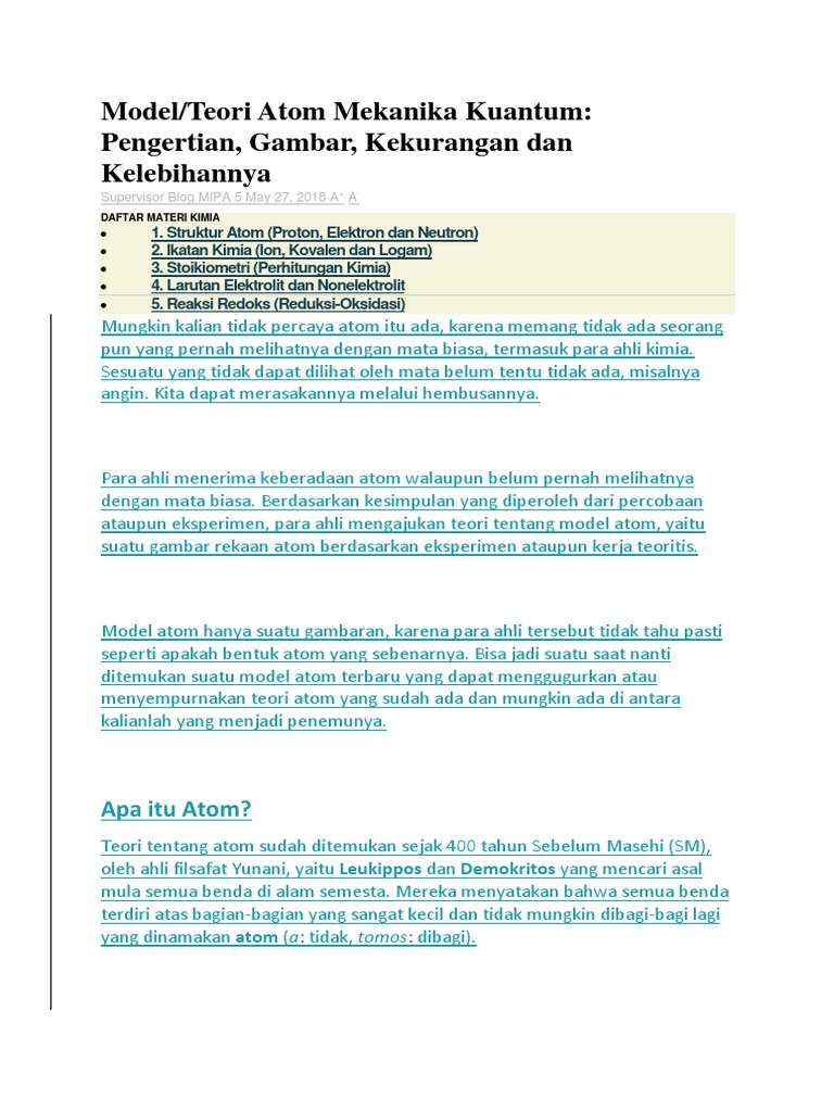 Kelebihan Dan Kekurangan Model Atom Mekanika Kuantum - Seputar Model