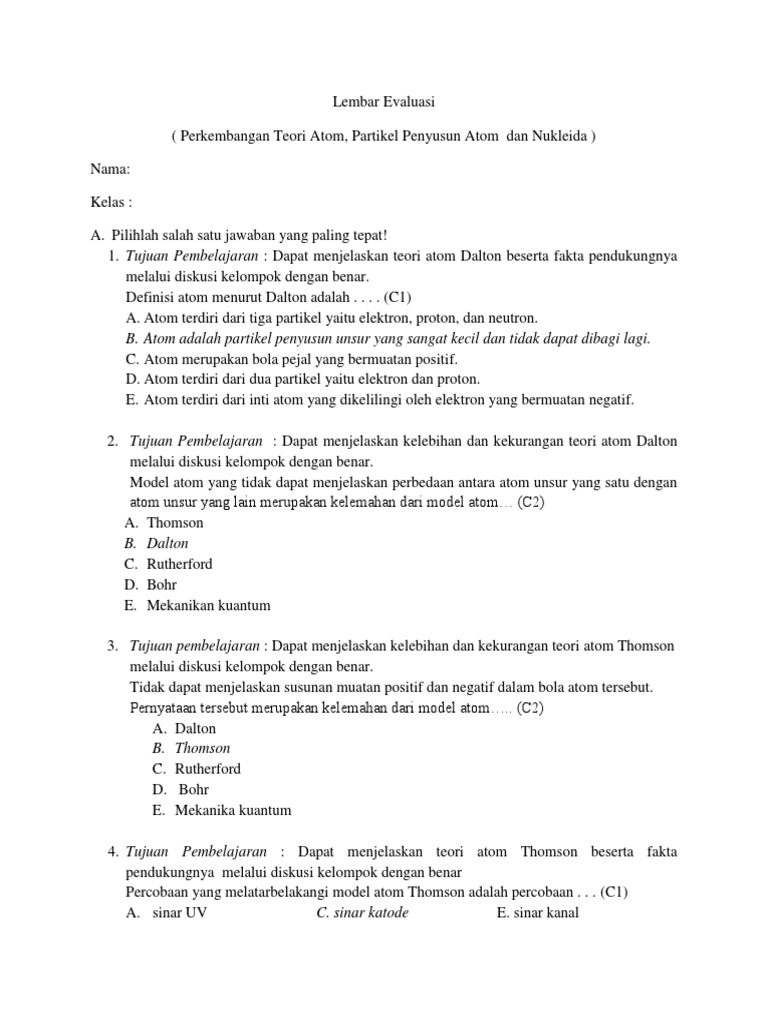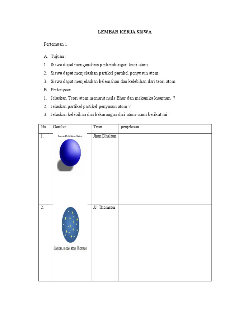Lembar Kerja Siswa: No Gambar Teori penjelasan 1. Jhon Dhalton