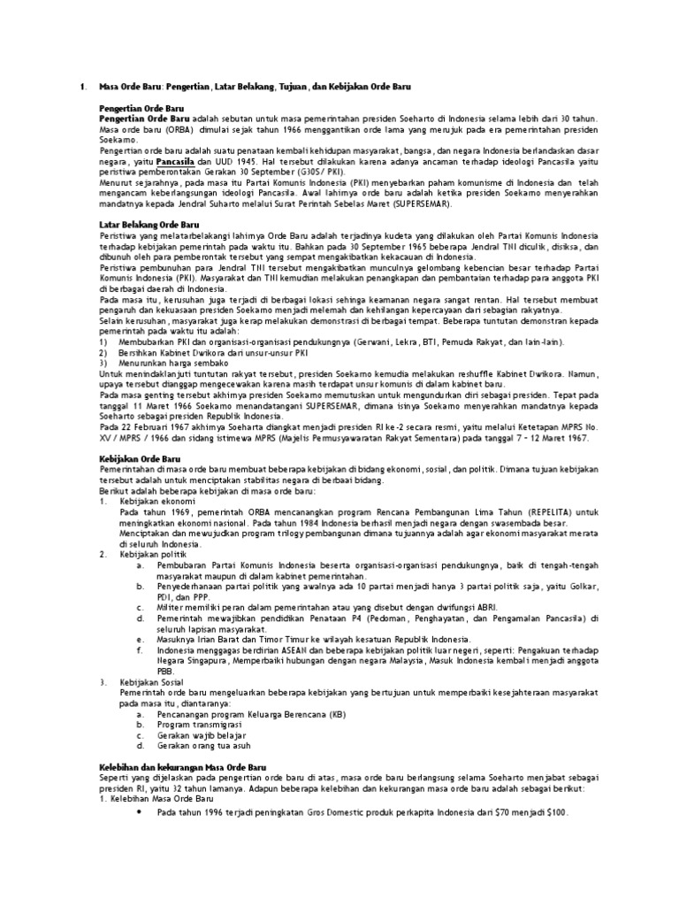 PENGERTIAN ORDE BARU: Sejarah, Kebijakan & Latar Belakang Lahirnya Orde Baru | The Book