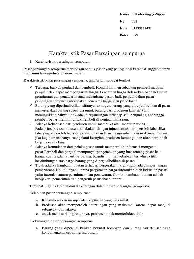 3 Apa saja syarat syarat pasar persaingan sempurna 4 Apa kelebihan …