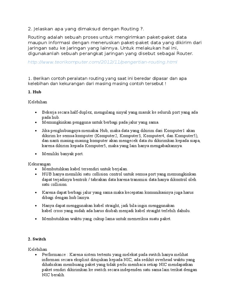 1. Berikan contoh peralatan routing yang saat ini beredar dipasar …